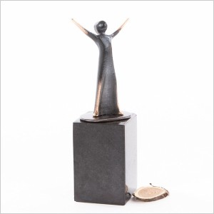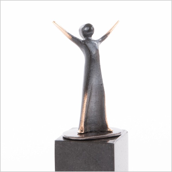 Dit asbeeldje is geplaatst op een granieten sokkel, deze sokkel is voorzien van een as inrichting.